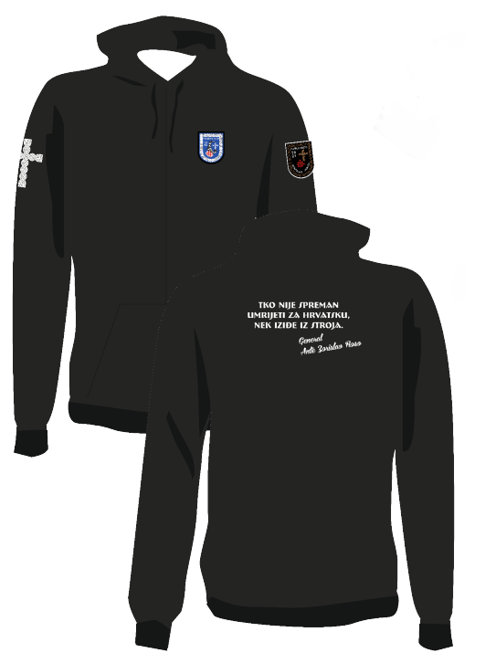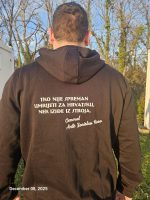 Crna hudica s upečatljivim citatom generala Ante Zorislava Rose i simbolikom zajedništva.