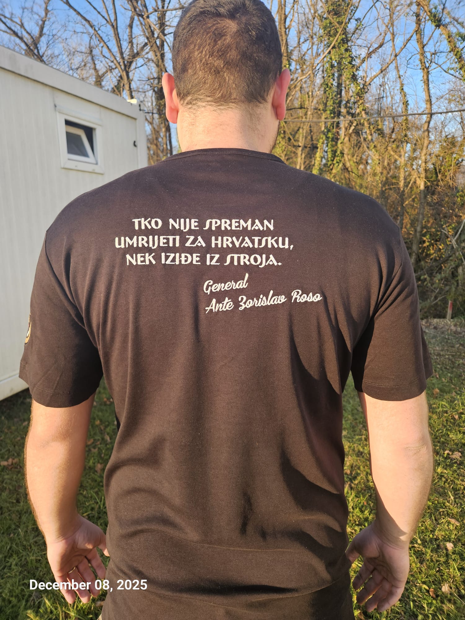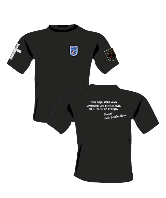 Crna majica s upečatljivim citatom generala Ante Zorislava Rose i simbolikom zajedništva.